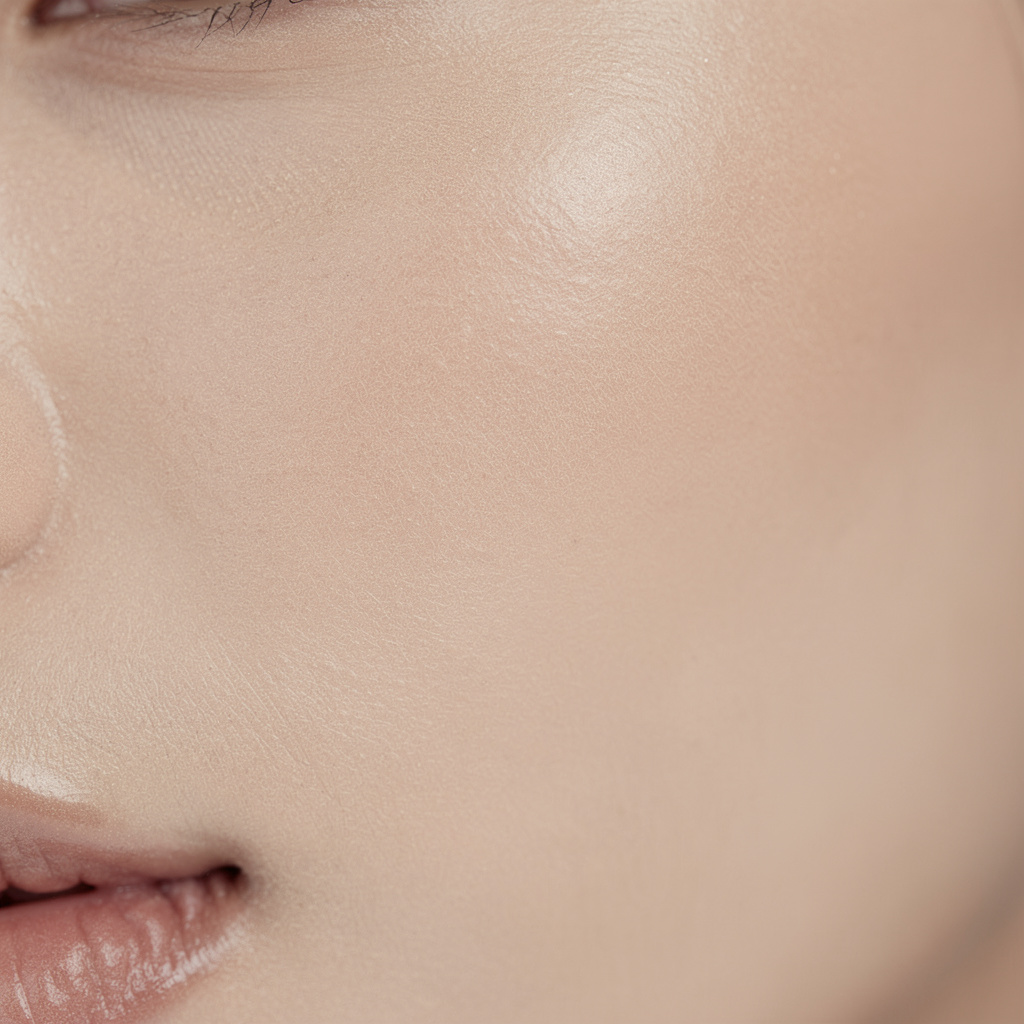 Close-up of healthy glowing facial skin showing smooth texture and natural radiance, soft natural lighting, clean beauty aesthetic